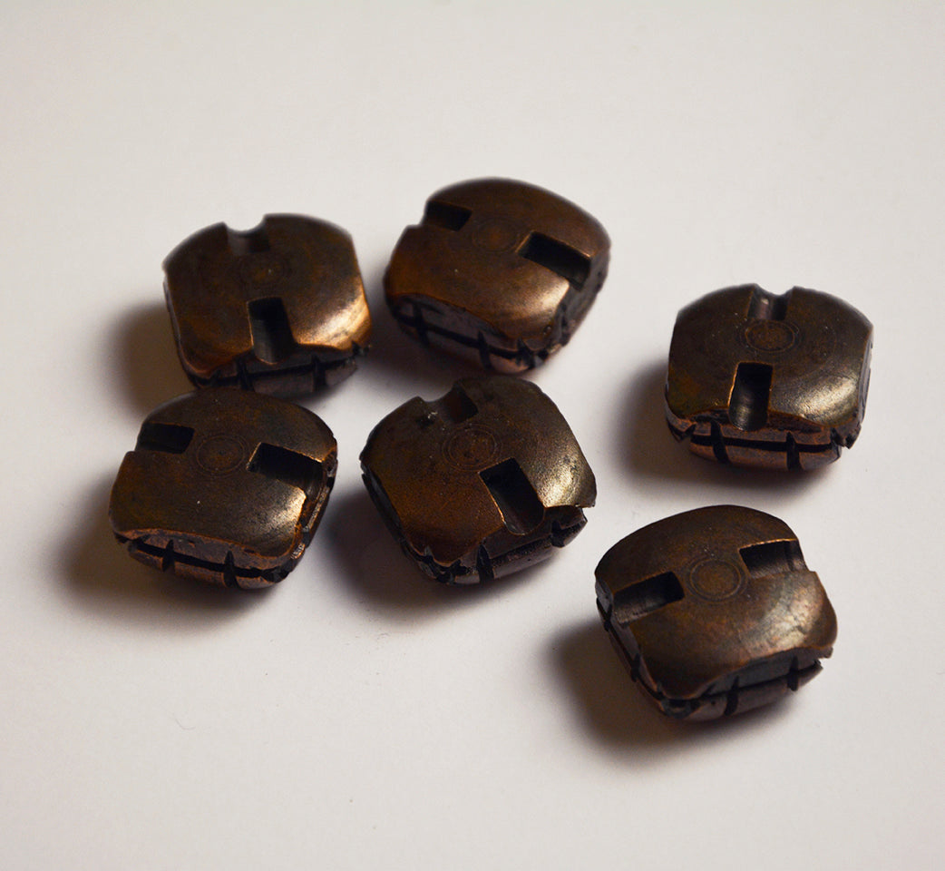 Kuparin värinen nappi. Halkaisija 2,5cm, korkeus 1,5cm.