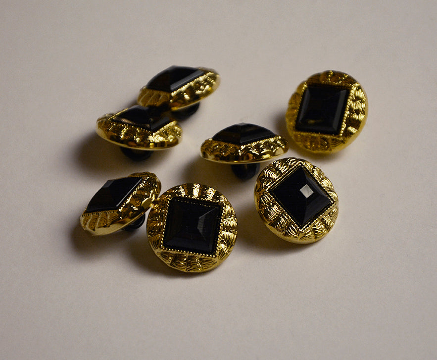 Kulta/musta nappi. Halkaisija 1,2cm, korkeus 1,7cm.