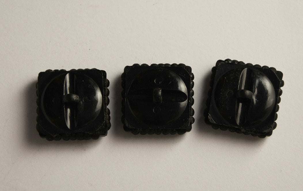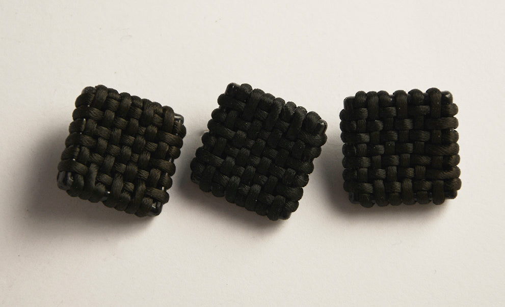 Musta kangasnappi. Halkaisija 2,5cm, korkeus 0,5cm.