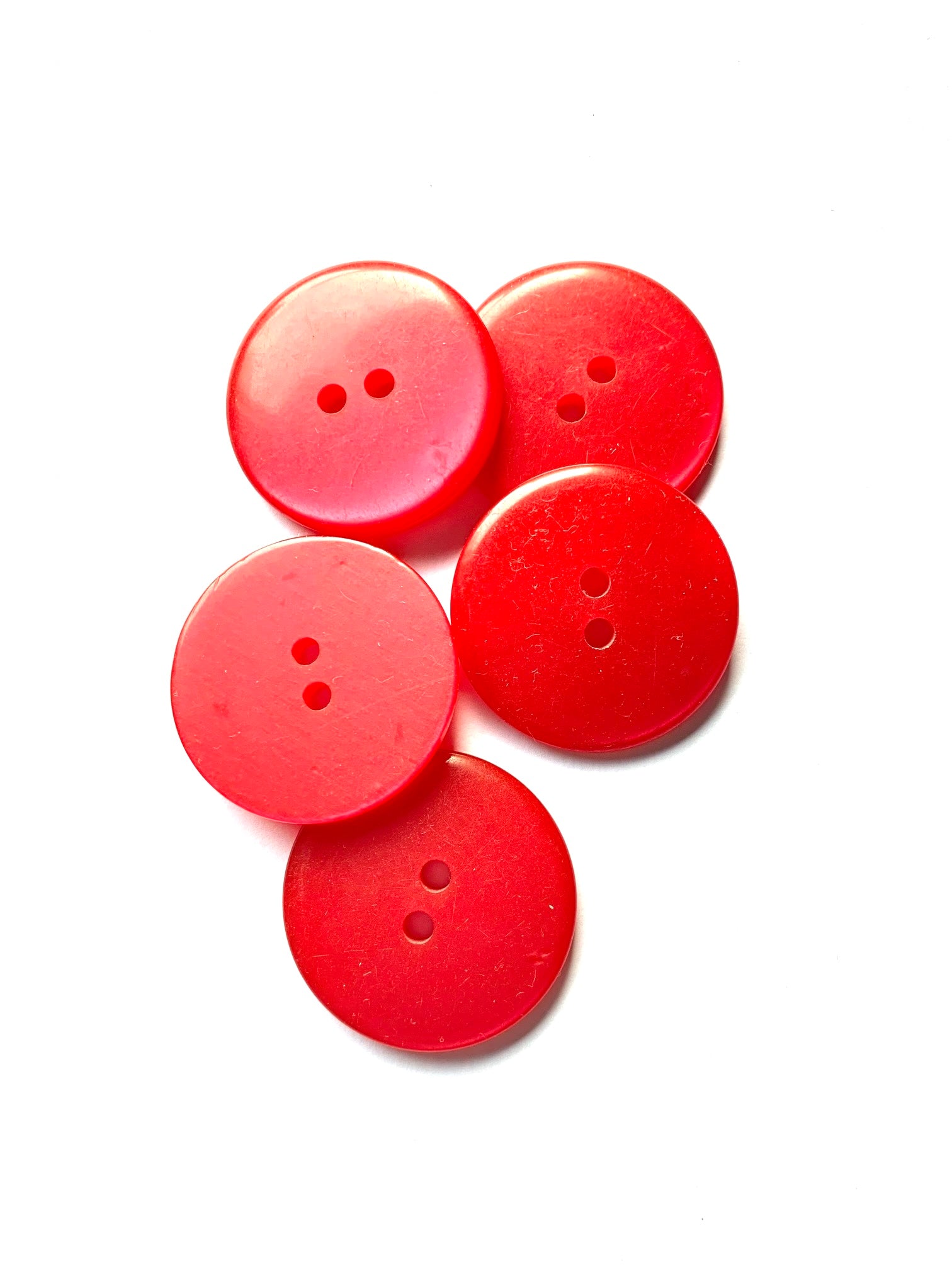 Punainen muovinappi. Halkaisija 3,5 cm.