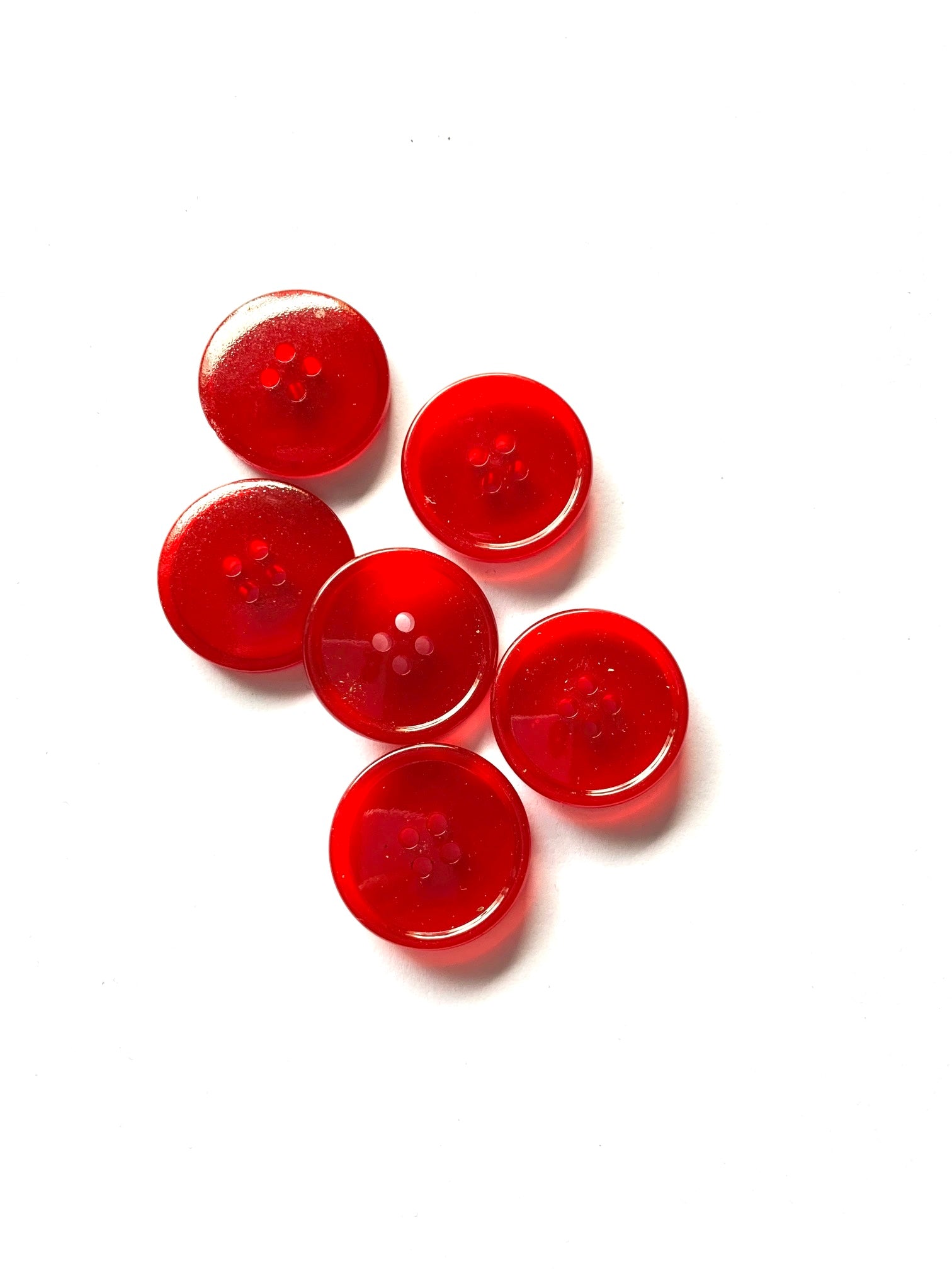 Punainen muovinappi. Halkaisija 2,1 cm.