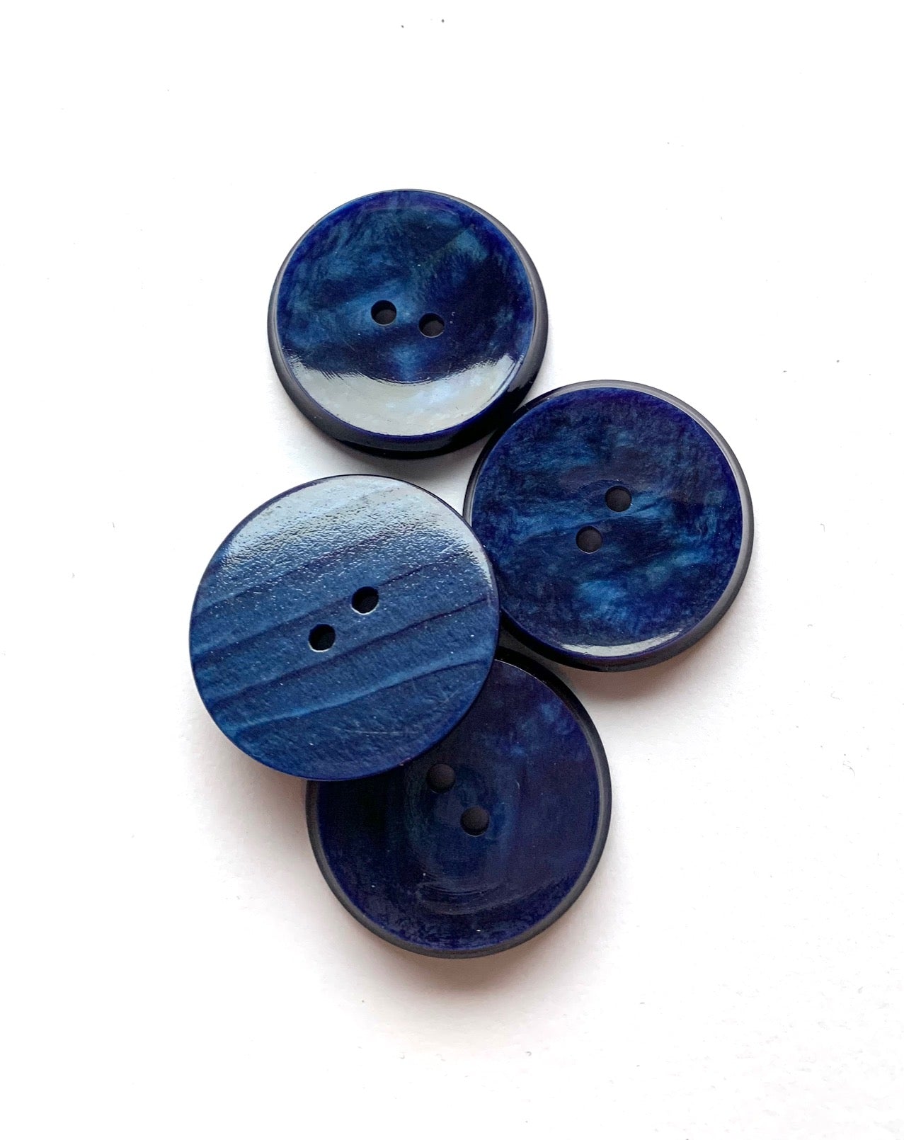 Sininen muovinappi. Halkaisija 2,8 cm.