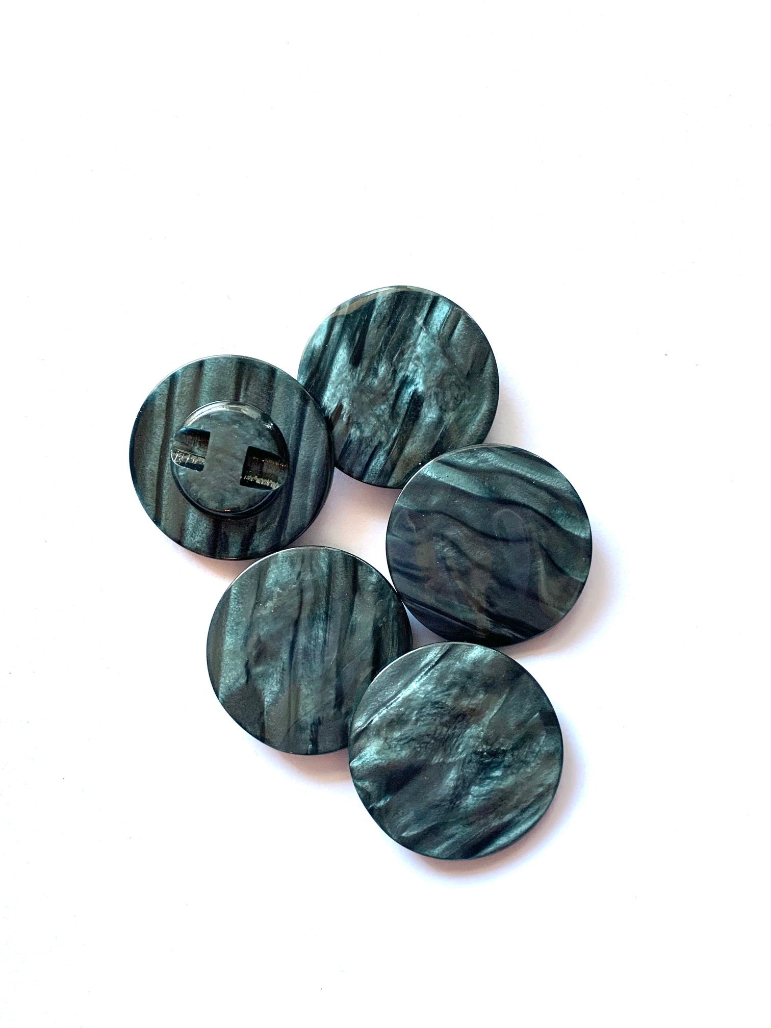 Sininen muovinappi. Halkaisija 3,3 cm.