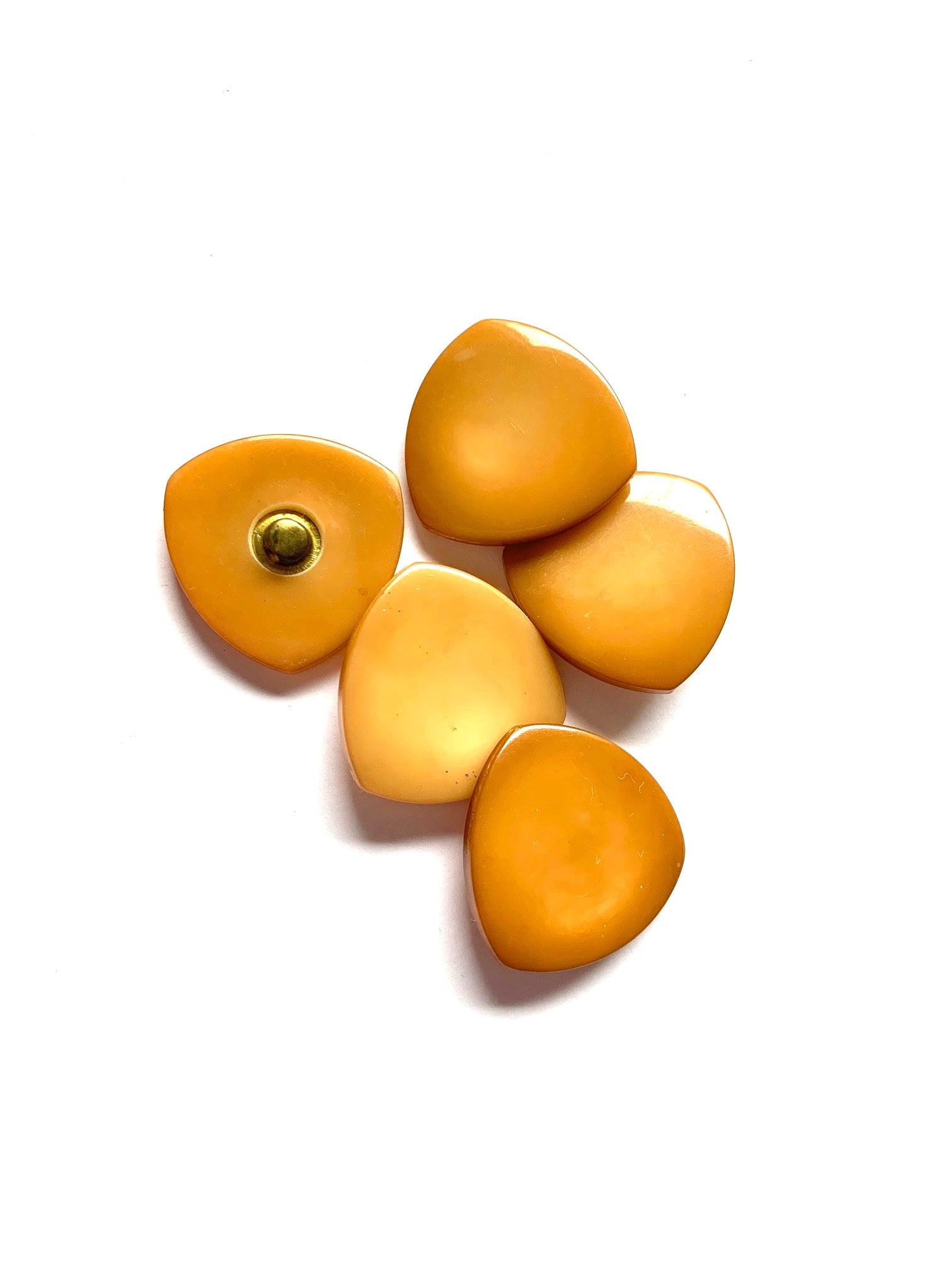 Keltainen muovinappi. Halkaisija 2,4 cm.