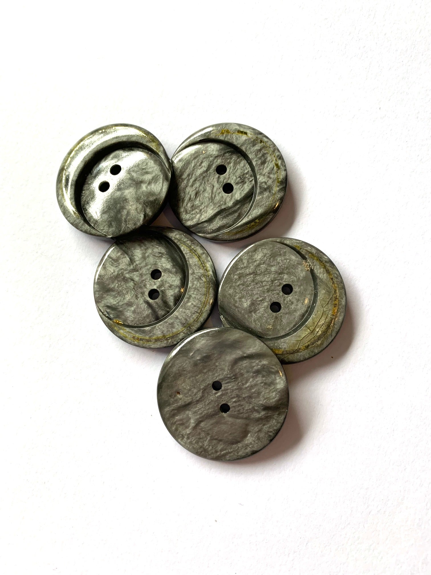 Harmaa muovinappi. Halkaisija 2,7 cm.