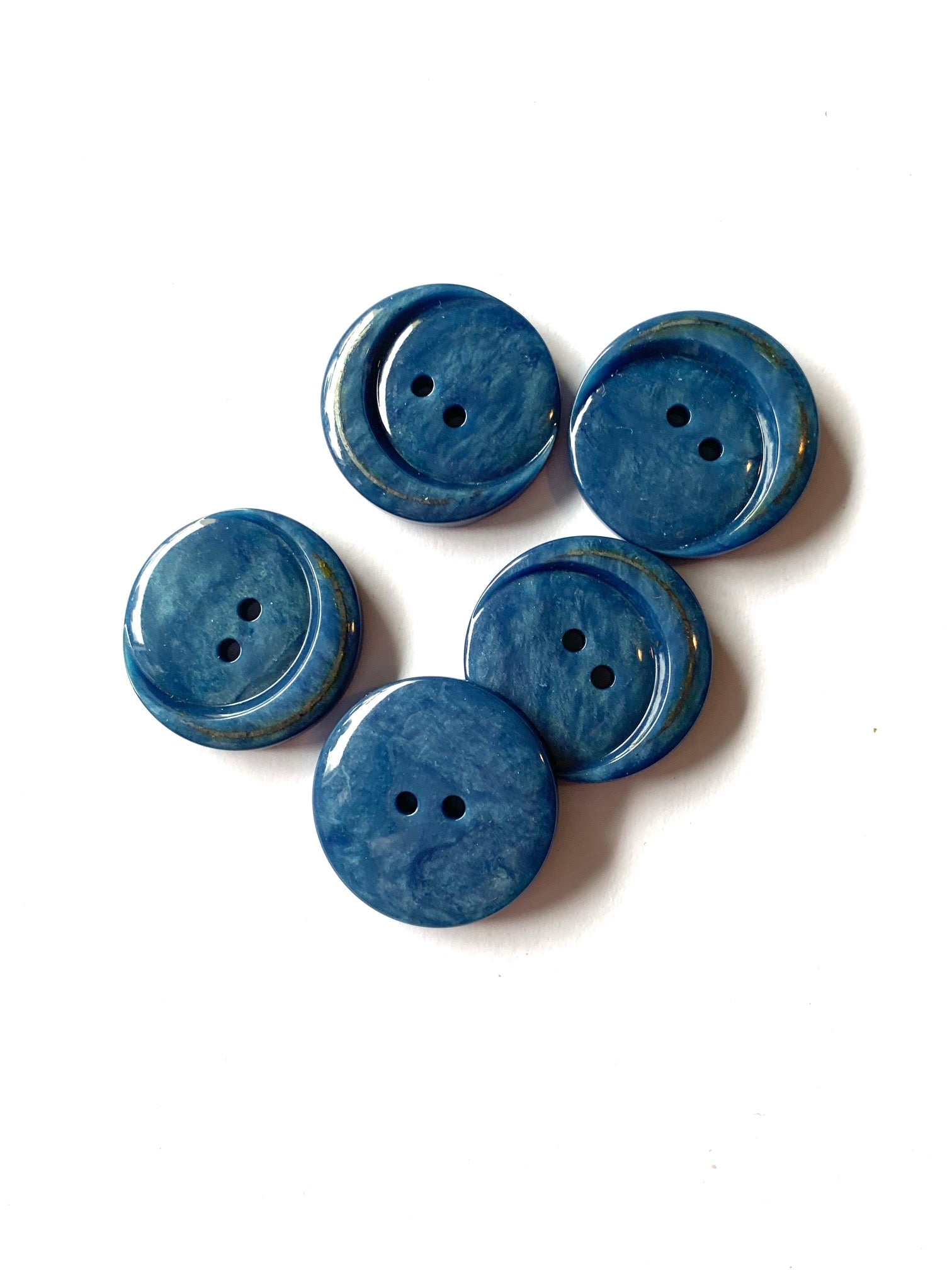 Sininen muovinappi. Halkaisija 2,2 cm.
