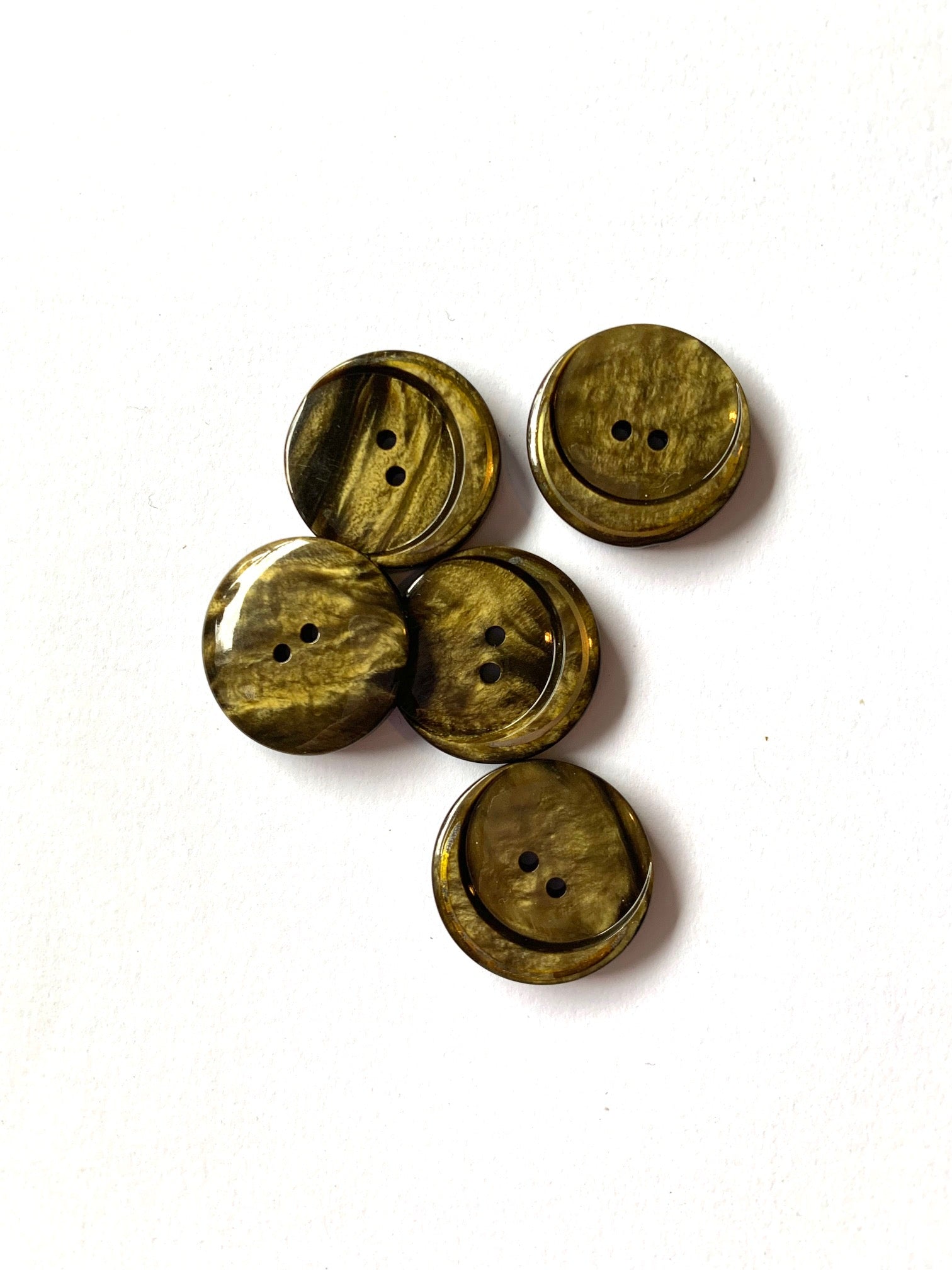 Ruskea muovinappi. Halkaisija 2,2 cm.
