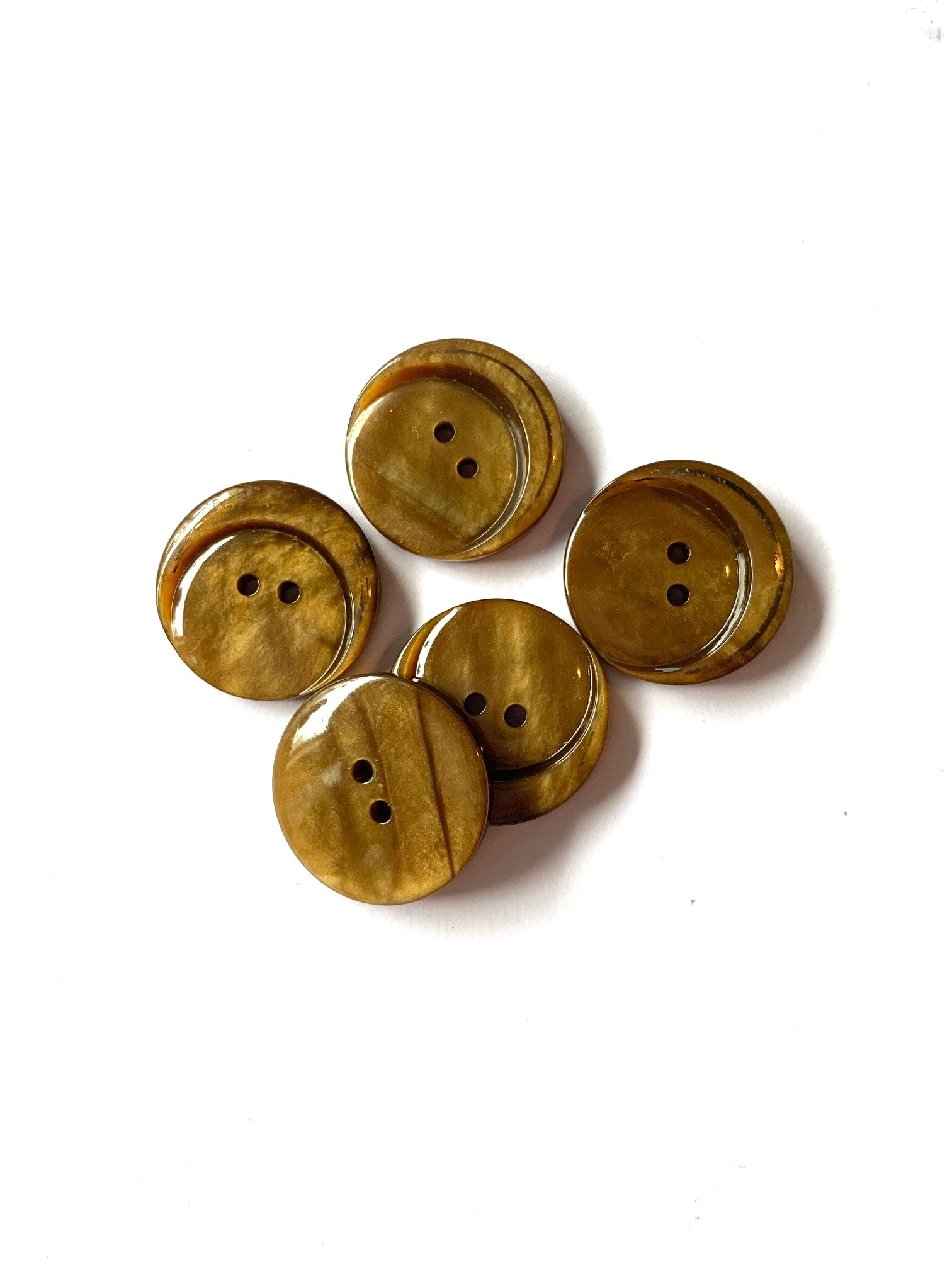 Ruskea muovinappi. Halkaisija 2,2 cm.