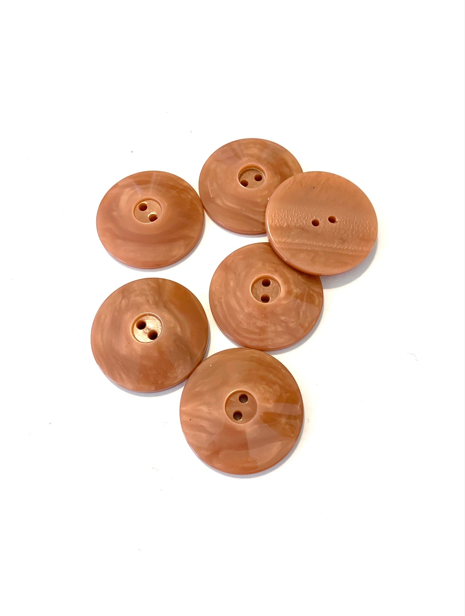 Vaaleanpunainen muovinappi. Halkaisija 2,5 cm.