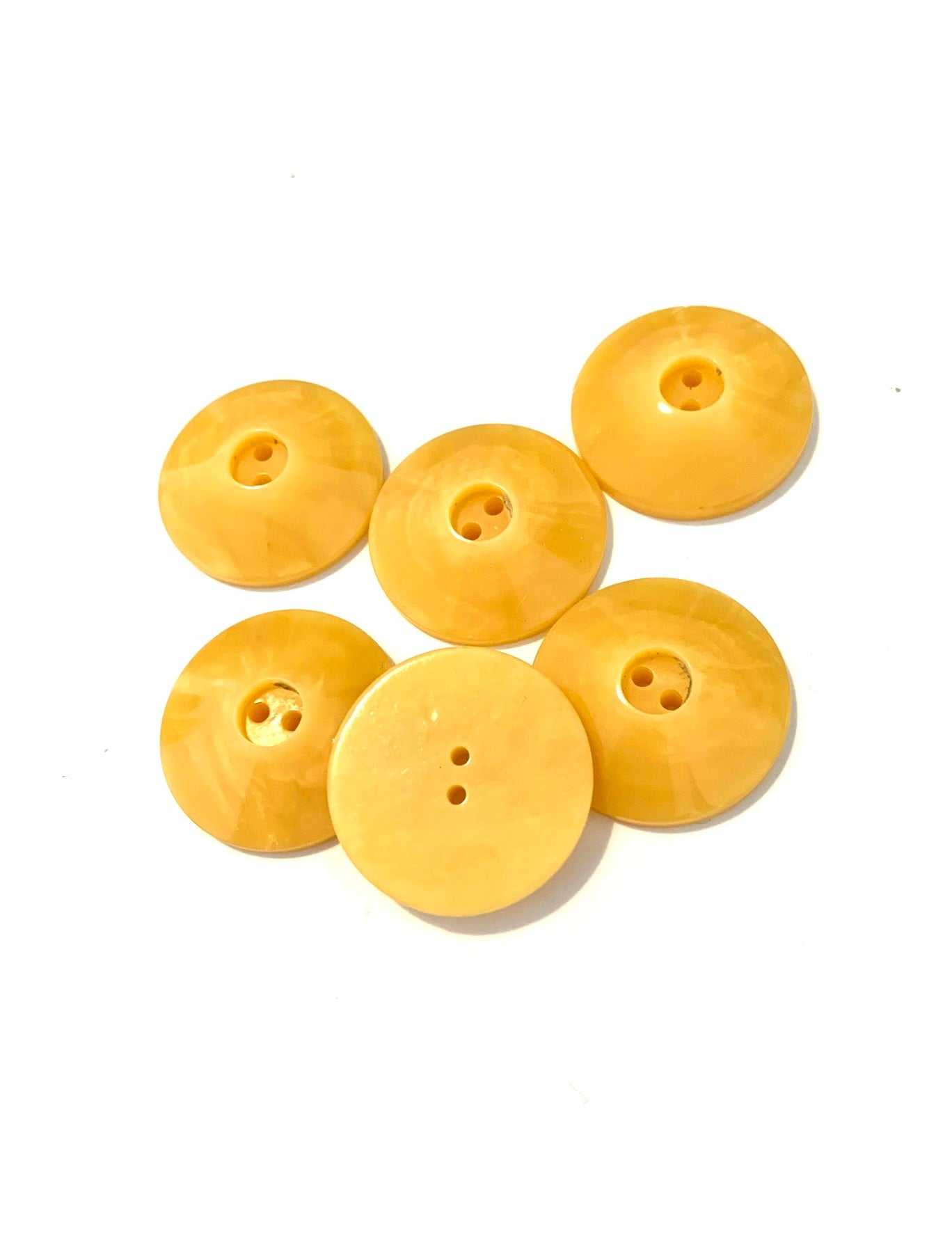 Keltainen muovinappi. Halkaisija 2,2 cm.