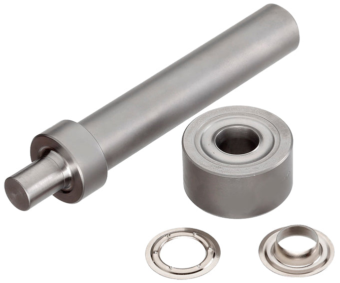 Käsityökalut verhorenkaan / sirkan puristustamiseen. Setissä meisti ja valitsemasi rengaskoon mukainen alasin.