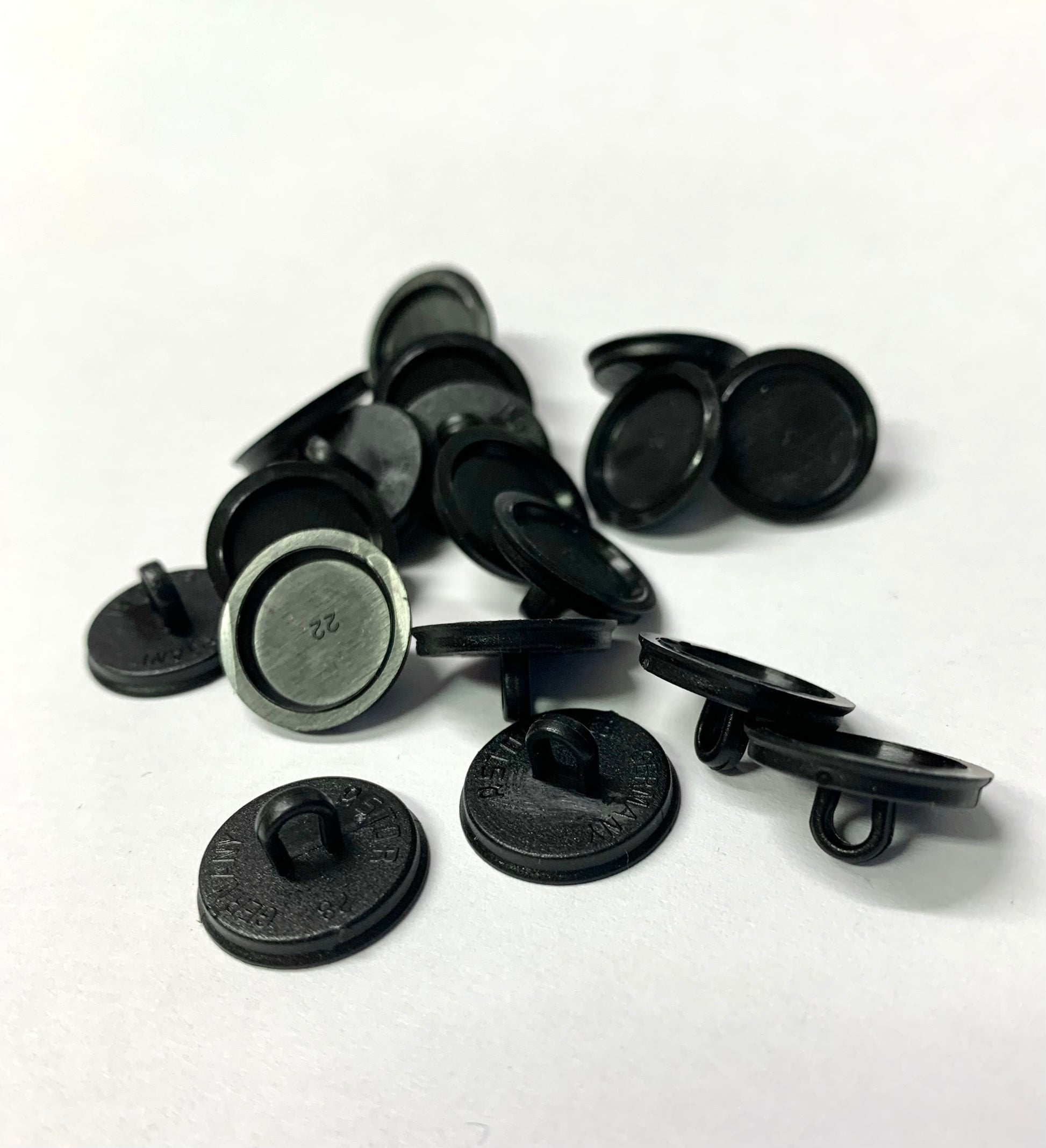 Muovinen napin kanta vaatteisiin ja asusteisiin.