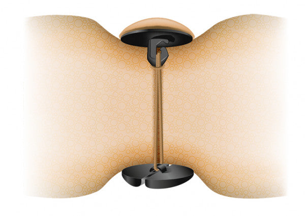 Musta muovikoukku, halkaisija 23 mm. Käytetään päällystettyjen nappien kantana. Tässä mallissa on koukku